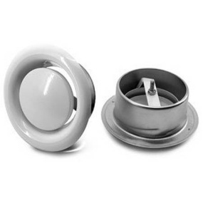 вытяжной анемостат, материал: металл, форма: круглый, тип установки: настенный/потолочный, управление: механическое, присоединительная муфта, диаметр воздуховода: 100 мм